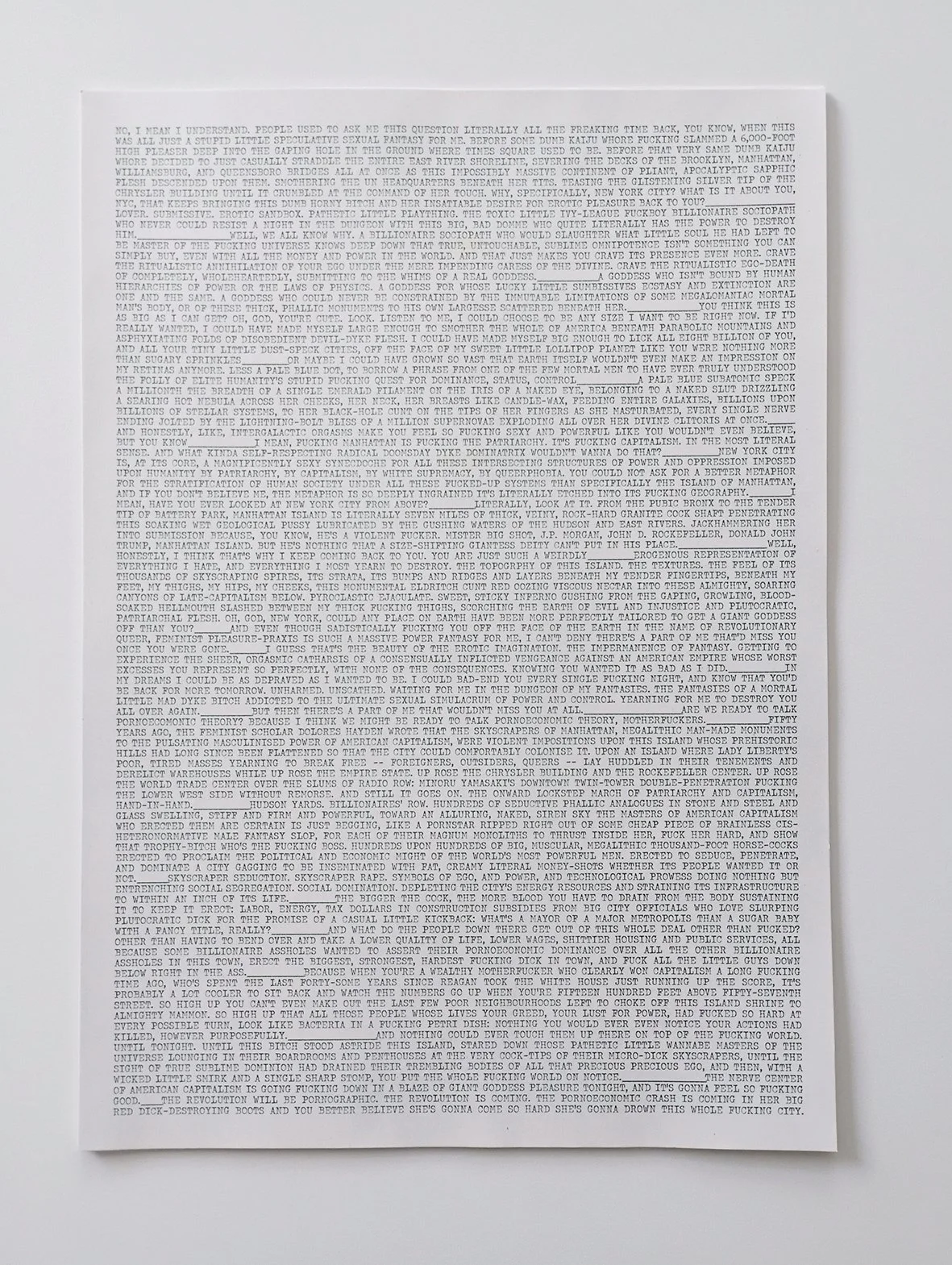 The Giantess Speaks is an (auto)ethnographic investigation of what has become known in recent years as the “size community” — “size” itself being an wide-ranging umbrella term for a variety of kinks, fandoms, affinities, and fantasies, which can be sexual, romantic, platonic, or simply aesthetic in character, centred around human, anthropormorphic, and even metaphysical bodies of superhuman scale. Since early 2024, Abigail has interviewed over 60 members of the size community, and amassed a vast collection of art, literature, and other ephemera exploring and detailing the lives, experiences, and fantasies of queer, gender-marginalised, disabled, and neurodivergent members of the size community. Over the course of 2026, and into early 2027, Abigail will be archiving her research collections with both the Bishopsgate Institute in London, and the University of Toronto in Canada, and hosting a series of exhibitions, panel talks, community events, and art performances on both sides of the Atlantic surrounding the accession of these collections. She will also be developing her debut full-length solo theatre show — under the working title Naked On Manhattan — over the course of this period.